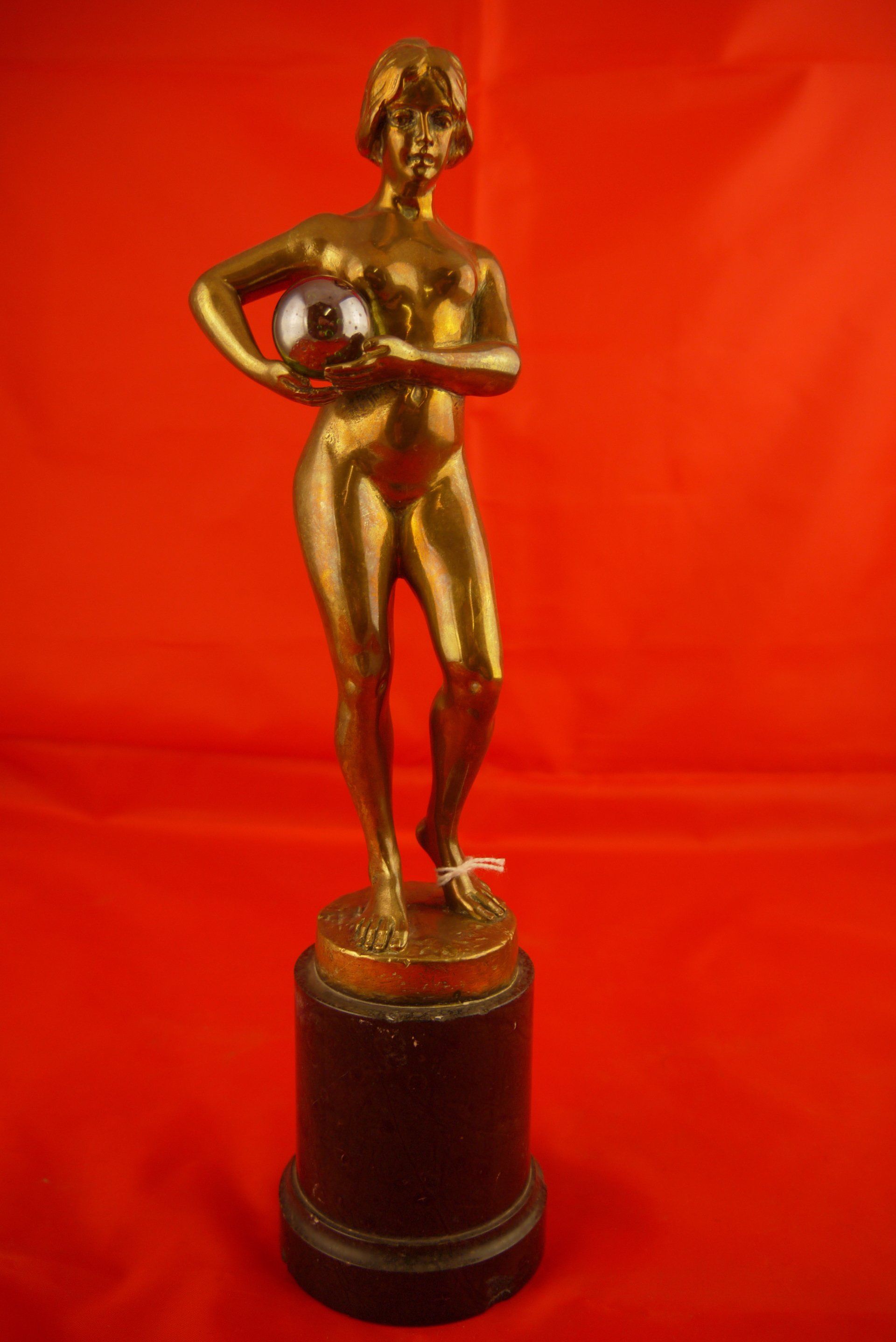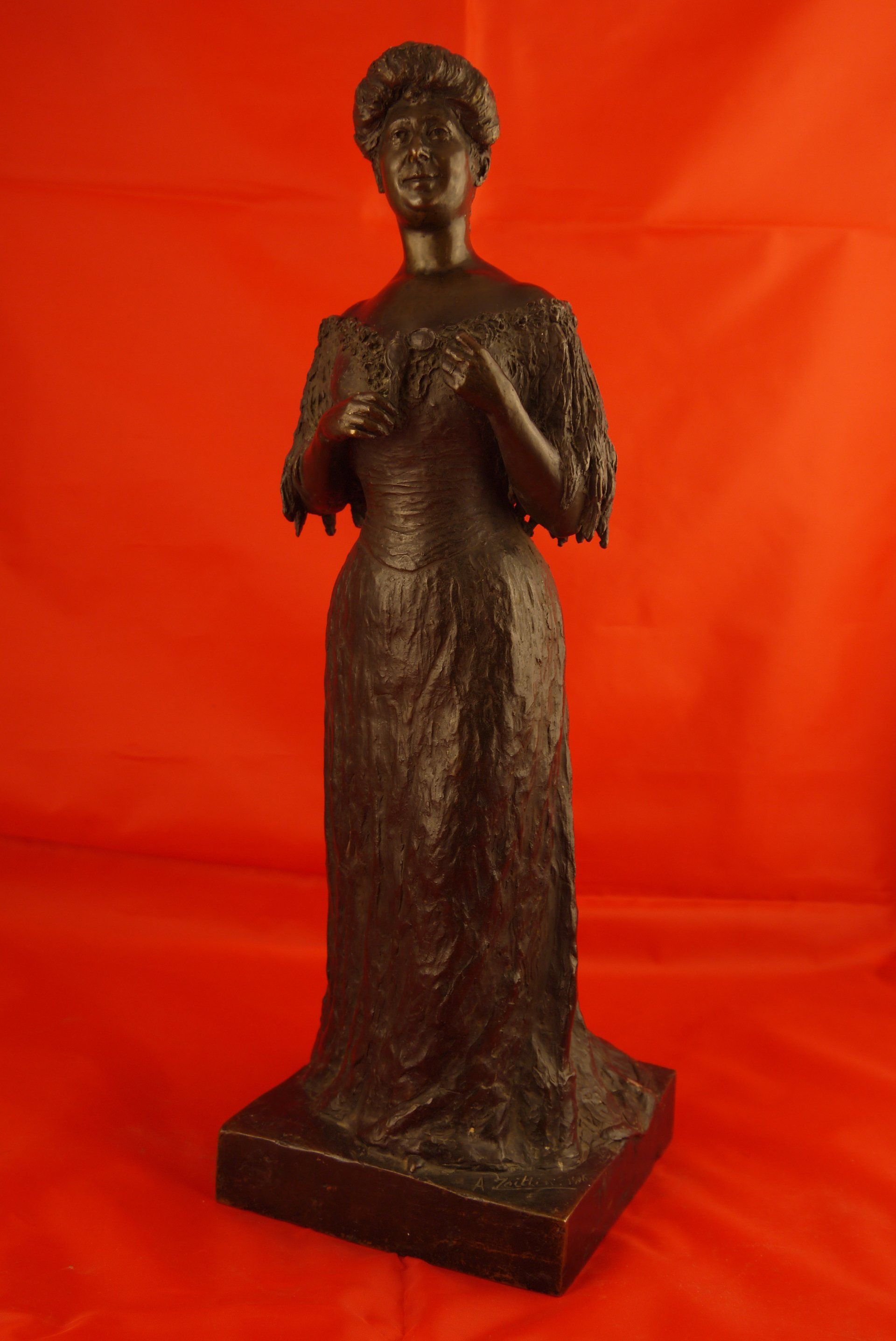 Alexander Zeitlin (Alias: Aleksandr Cejtlin) (Russian, 1872 - 1946) was born in Tiflis, Georgia, Russia on July 15th 1872. He studied at the Academy of Fine Arts in Vienna. After relocating to Paris, where he continued his education at the Academie des Beaux-Arts under the tutelage of Falguiere. He exhibited at the Paris Salons from 1901 to 1914. After the First World War Alexander Zeitlin moved to New York in 1915, where he successfully worked on numerous commissions. He exhibited in New York in 1923. In 1929 he received a medal from the American Federation of Labour for his outstanding work. A Bronze Figure of a Lady With Opera Glasses wearing an evening dress, on a square integral base, signed 'A. Zeitlin 1906'. Size: 43cm tall.