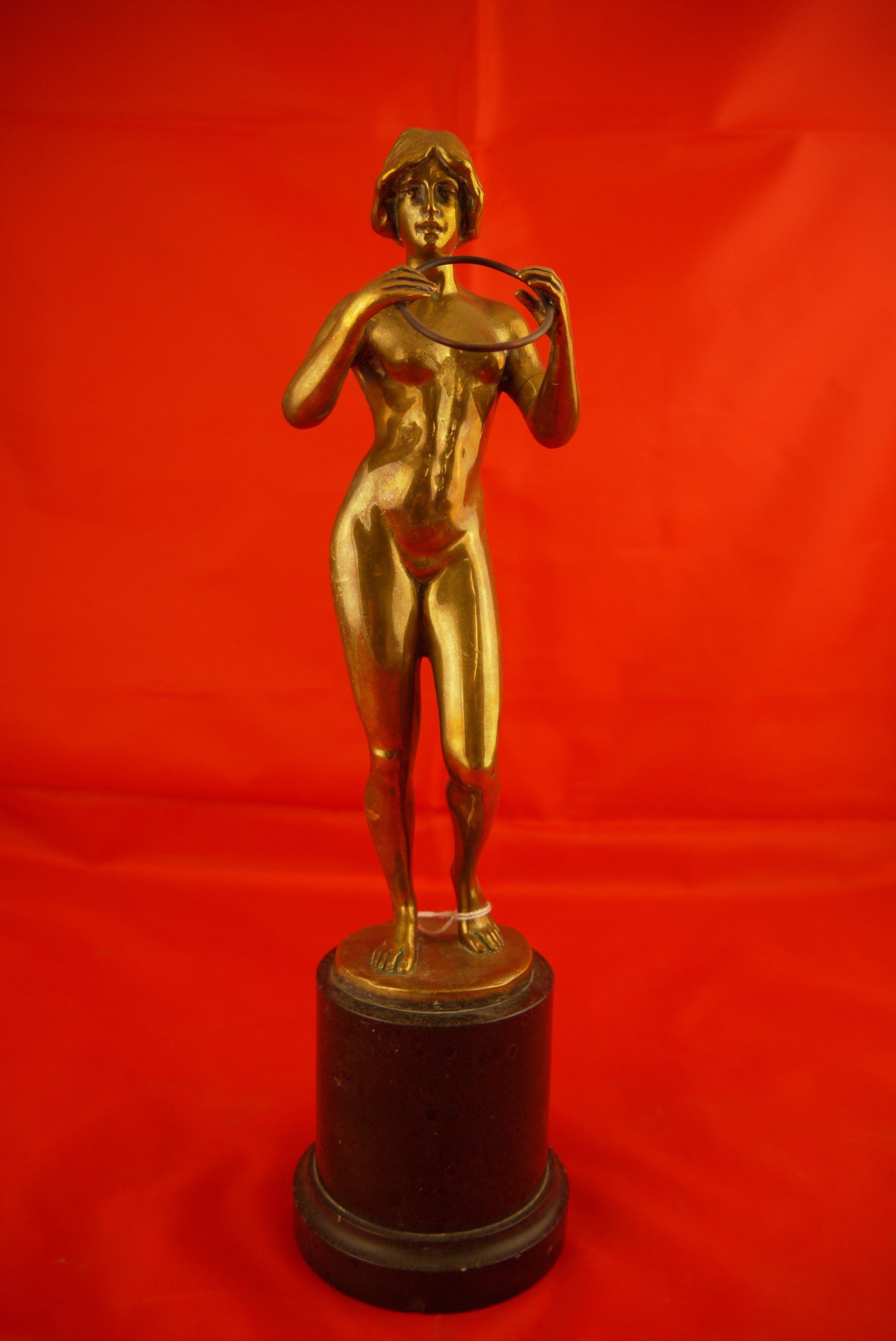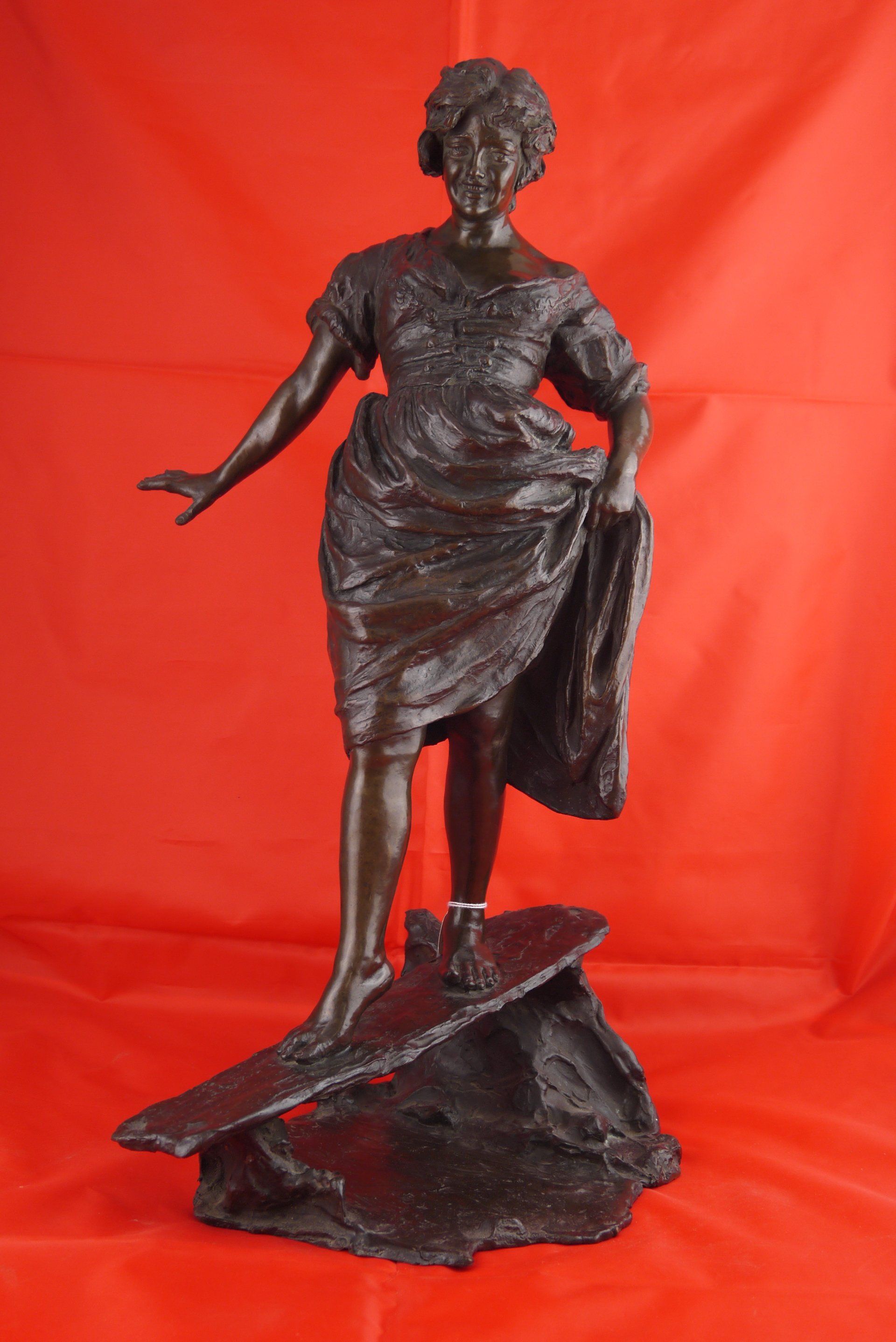 Gabreilie Parente (Worked c. 1900 – 1915). This bronze study of a young woman crossing a stream is full of life. Signed, Circa 1910. Illustrated Berman no. 1213. Berman spelled the sculptors name incorrectly both on the page and in the index (Pirrente). Size: 56cm tall.