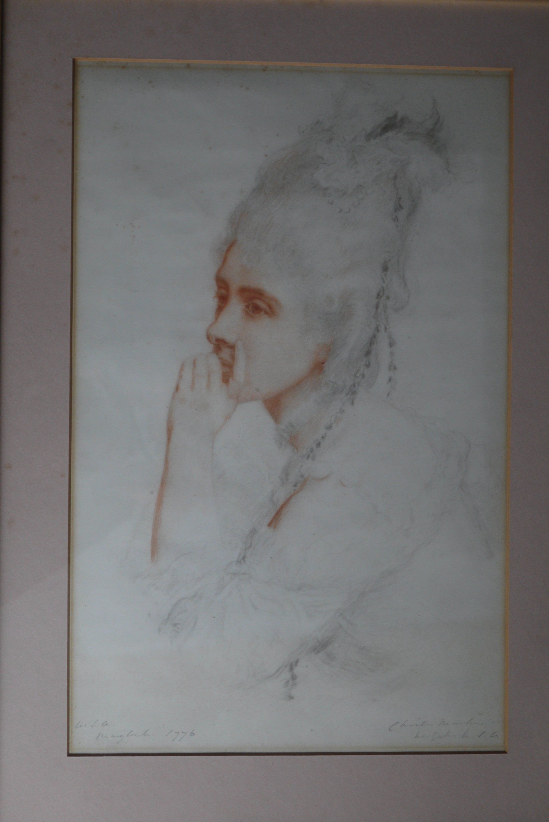 Charles Martin (1820–1906), British artist, son of John Martin (1789 –1854). From London and moved to America and worked in Charleston 1846-8. Charles Martin exhibited at the National Academy of Design, New York in 1851. A portrait of Turner by him is in the National Portrait Gallery, London. Exhibited; Royal academy; British Institute; Royal Hibernian Academy; Society of British Artists; New Water colour society. Walker Art Gallery, Liverpool; Royal Institute of Oil Painters. Represented: Lang Art Gallery, Newcastle; National Portrait Gallery, London Tate, London; British Museum; Harvard Art Museums; Sir John Soane’s Museum; Guildhall Art Gallery; Royal Institute of British Artists; Royal Society; The Royal Institute of British Architects; Royal College of Physicians of Edinburgh. Charcoal and red chalk, signed, blindstamp of fleur de lis under the mount. Blindstamp: 18 [blindstamp of fleur de lis] 77 is often found on his work. (numbers in pencil). See: https://www.harvardartmuseums.org/collections/object/308570?position=0. Image size: 44.5cm high x 28cm.