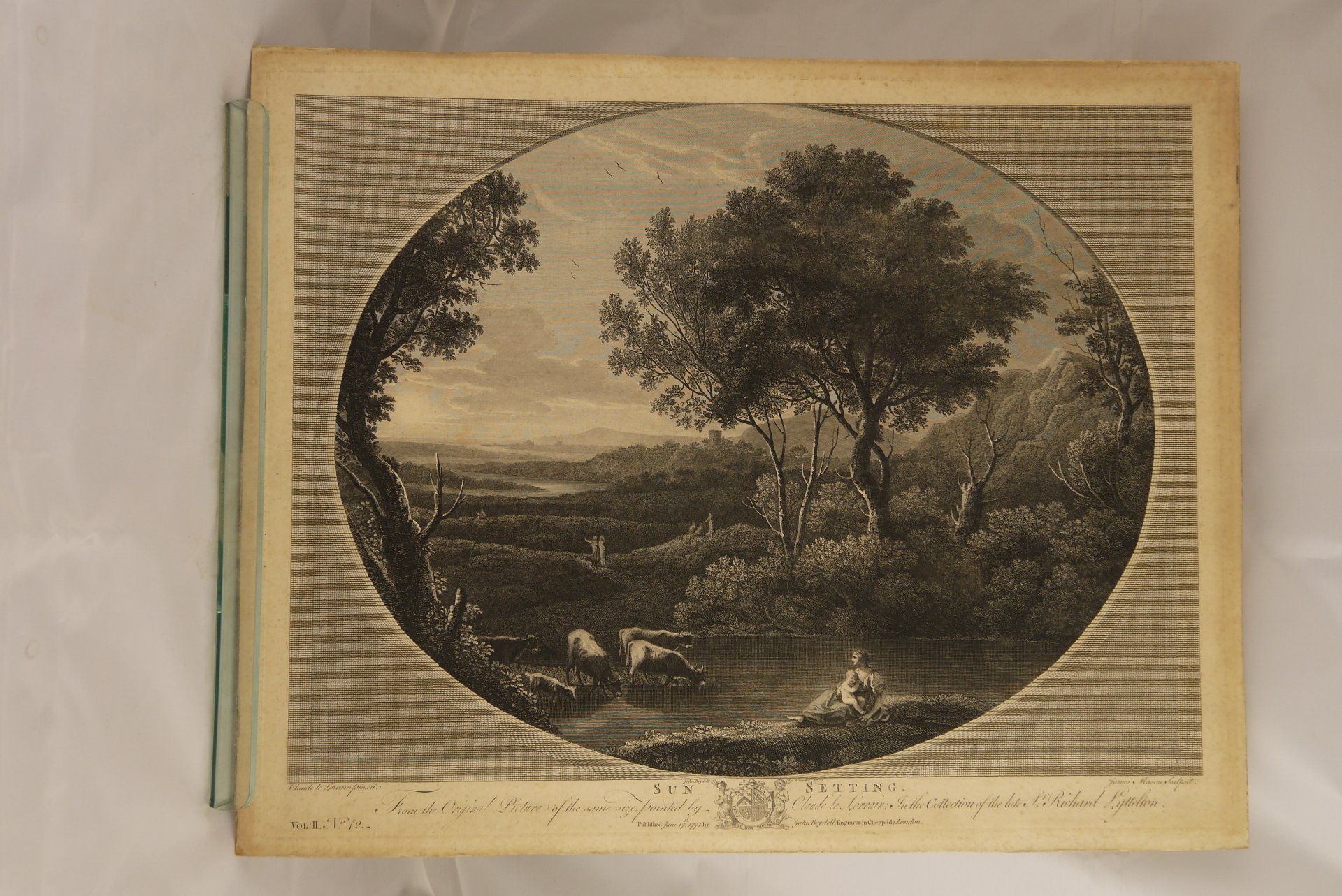 Sun Setting: copper engraving printed by John Boydell in 1771,after the original Picture painted by Claude le Lorrain n the collection of the late Sr. Richard Lyttelton. Vol: II. No. 42. Engraved by James Mason.