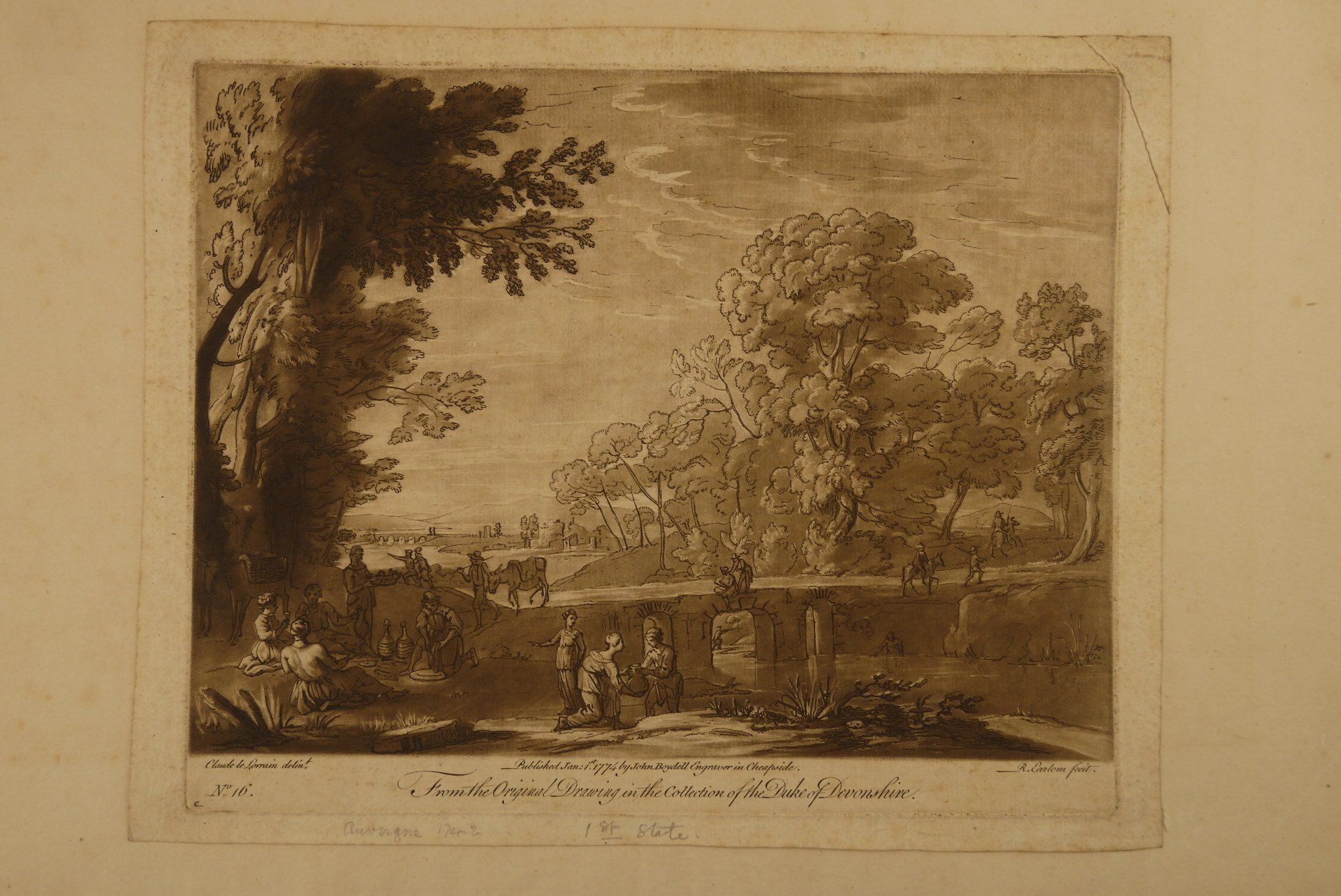 Etching and mezzotint made for the Liber Veritatis, inscribed: From the Original Drawing in the Collection of the Duke of Devonshire no. 16; after Claude Lorrain, aquatint made by Richard Earlom, published by John Boydell in 1774. Plate size: 21cm high x 26cm.