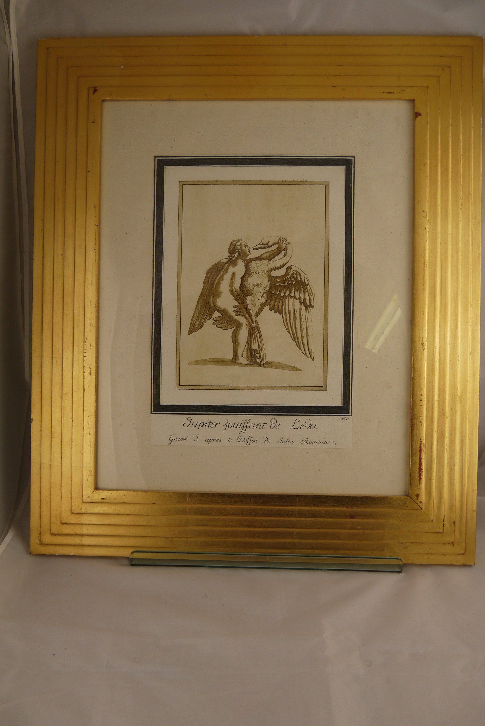 Jupiter Jouissant De Leda (Leda and the Swan) etching in aquatint. Published, circa 1777, by Prestel after Giulio Romano (1499 – 1546). In Germany the most interesting etchers in aquatint in the 18th century were Johann Gottlieb Prestel (1739 – 1808) and his wife Maria Catharina Prestel (1747 – 1794). Framed size: 67cm high x 57cm.